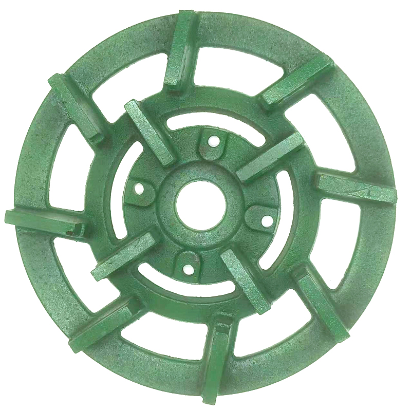 Diamond metal grinding disk is mainly used for rough grinding of granite slab before using the resin pads and buff. There are three grit sizes available for rough grinding which is 50#,200#,400# and each metal grinding disk has 12pcs segments by size 40*10*10mm. When you are using metal grinding disk on on the automatic polishing line with 12 heads, 16 heads, 20 heads and 24 heads, you may use three heads in same grit size to have better calibration or you may skip any grit size according to your hardness of stones. Metal grinding discs are popular using on Chinese automatic polishing line such as Henglong, Shengda, Keda etc.