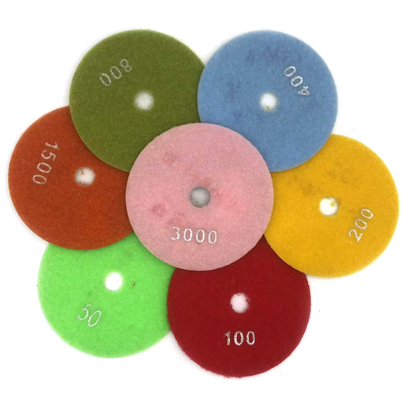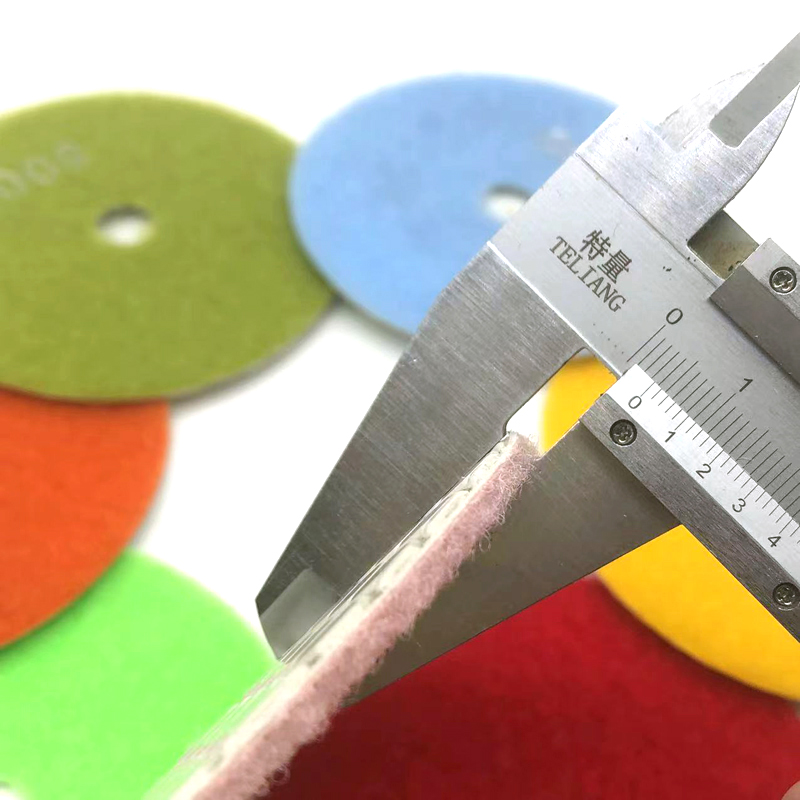 The diamond dry polishing pad is mainly used for grinding and polishing different types of stones. It is a flexible processing tool made of diamond as abrasive and composite materials through special technology and formula. It can be used for special-shaped processing of granite, marble. It is not easy to dye for there is no need to add water in the process of use and can achieve the polishing effect of wet polishing pad. Dry polishing pad has high advantages in saving water resources, especially for the factories where are lack of waters.Dry polishing pads are not only using for marble and granite, but also widely used in polishing for concrete, cement floor, terrazzo, glass ceramics, artificial stone, tiles, glazed tiles, vitrified tiles. Due to the complex manufacturing process, the technical requirements are high. In order to make easy identify the grit size,we have different grit in different colors.