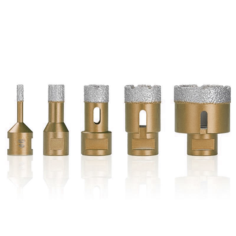 1. Vacuum brazed dry drill bits can be used in dry drilling of granites, marble, hard tiles, hard porcelain, ceramics, etc.